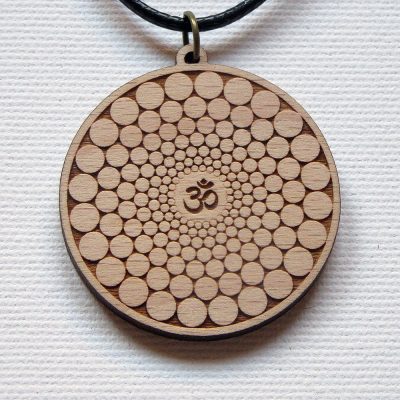 Medalion de lemn gravat – Simbolul OM cu diametrul de 3 cm.
