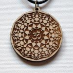 Medalion de lemn gravat – Mandala cu Simbolul OM cu diametrul de 4 cm.