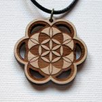 Medalion de lemn gravat – Mandala Floarea Vietii cu diametrul de 4 cm.
