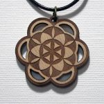 Medalion de lemn gravat – Mandala Floarea Vietii cu diametrul de 4 cm.