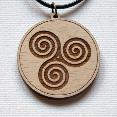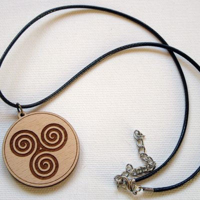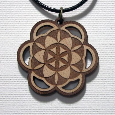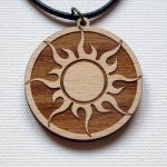 Medalion de lemn gravat – Mandala Soarelui cu diametrul de 4 cm.